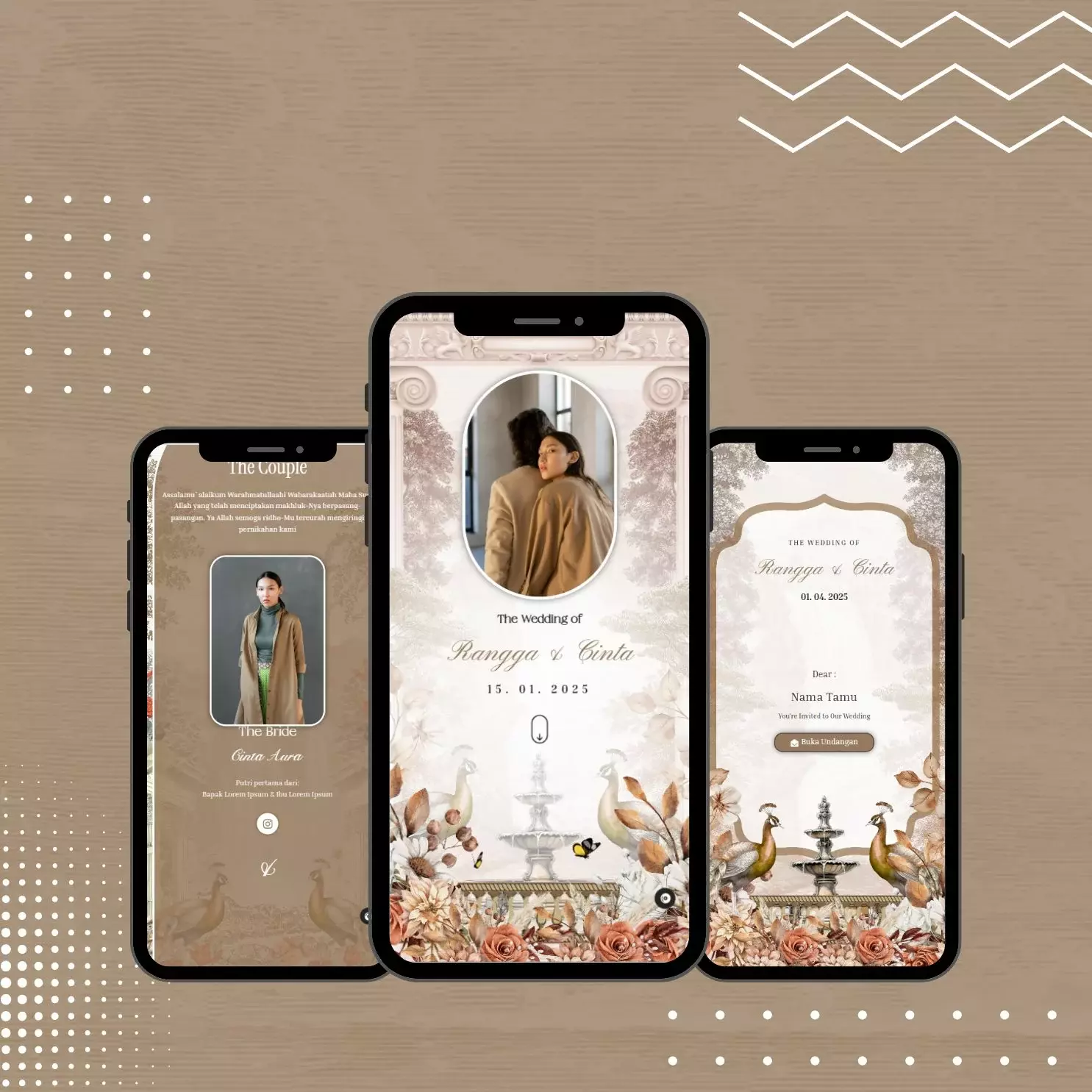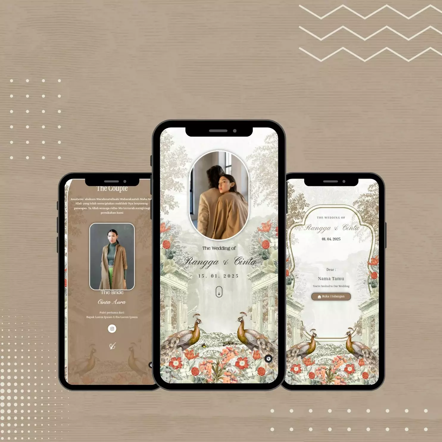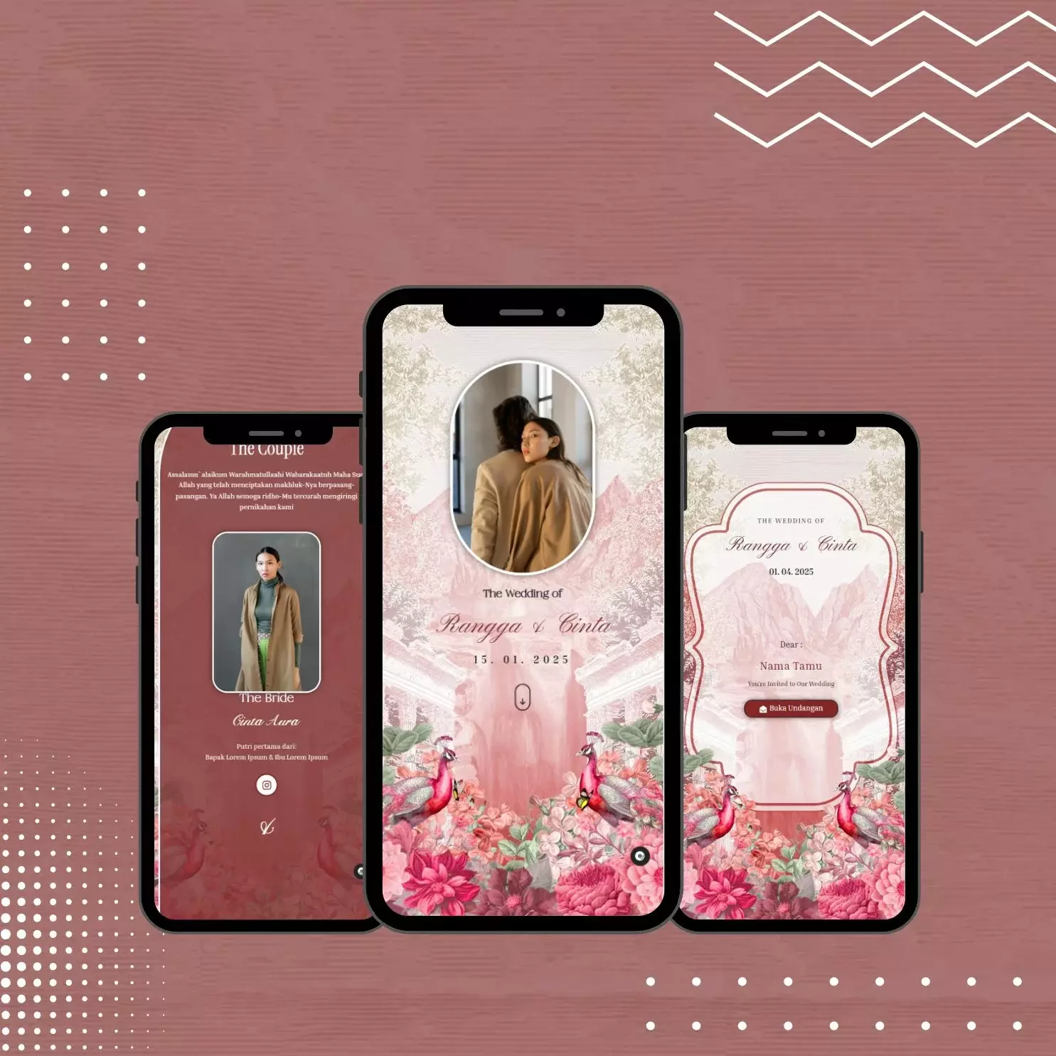 Costum Domain adalah alamat web unik yang dipesan dan dimiliki mempelai untuk situs web undangan pernikahan mereka, seperti nama-pasangan.com, yang menggantikan alamat. Domain khusus ini memberikan tampilan yang lebih profesional, eksklusif, dan personal, serta lebih mudah diingat oleh tamu undangan.